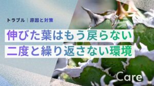 実店舗のデメリットは品揃えの限界です。ネームド品種(シーザー、SAD等)を常時在庫している店は少なく、入荷しても即売れするため、SNSで入荷情報を追いかける必要があります。また、店舗の管理環境が悪い場合(水やりが過剰、通気が不十分)、棚に長期放置された株は根腐れや徒長のリスクがあります。購入前に株を持ち上げて軽く揺すり、ぐらつかないか(根が張っているか)確認するのが鉄則です。